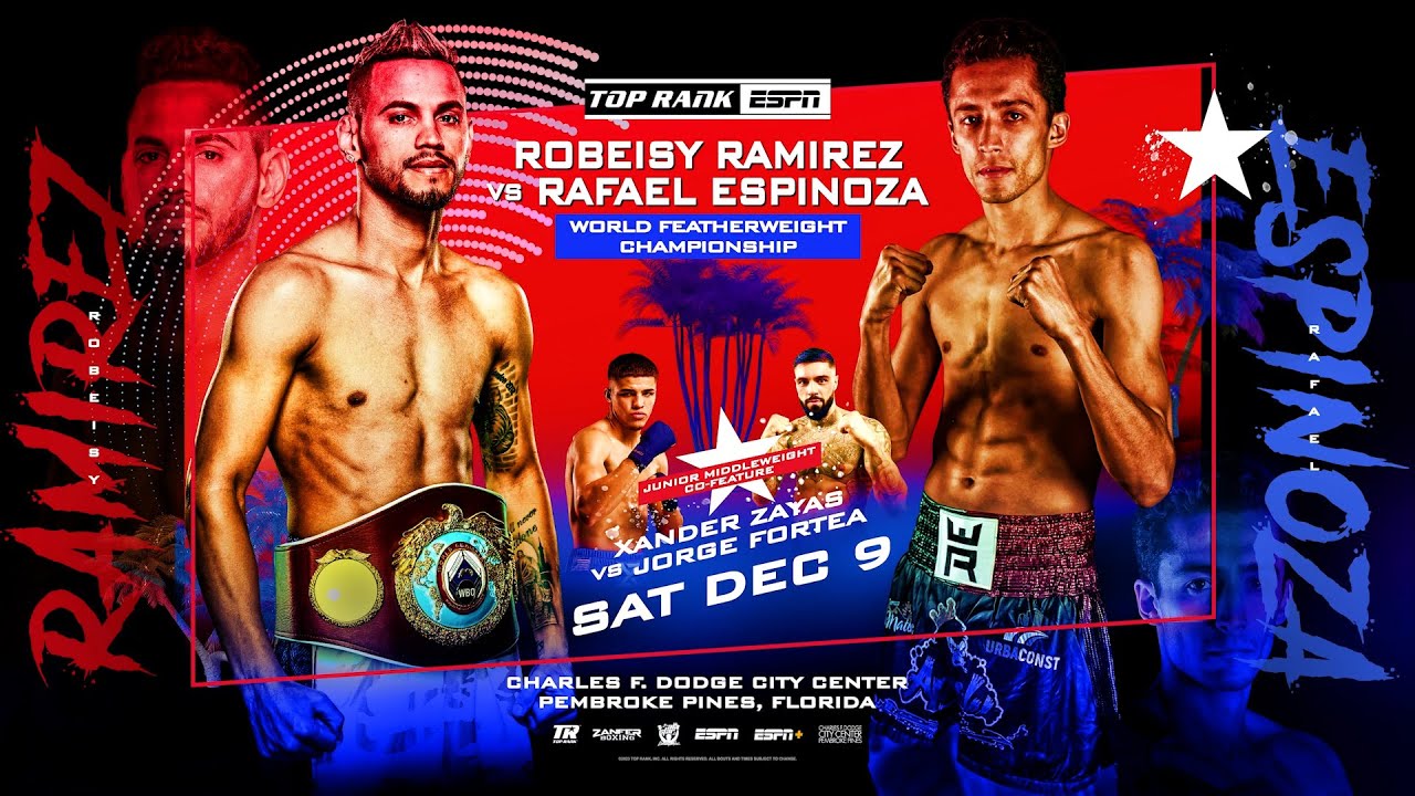 Перед тем как остановить Васкеса, Эспиноса сохранил свой пояс WBO в столь же уверенном поединке против олимпийского чемпиона Робейси Рамиреса в декабре прошлого года. Примечательно, что их первая встреча почти за год до этого была расценена как значительный апсет, когда «Эль Дивино» с трудом победил Рамиреса по очкам и лишил его титула. Но затем, в реванше, Эспиноса развеял все сомнения в своем мировом уровне, остановив более опытного соперника беспощадным натиском в шестом раунде.