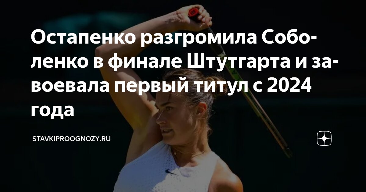 Елена Остапенко завершила великолепную неделю на Porsche Tennis Grand Prix, одержав победу над первой сеяной Ариной Соболенко со счетом 6-4, 6-1 в финале. Этот триумф принес ей девятый титул в карьере WTA и первый на грунте после победы на Ролан Гаррос в 2017 году.