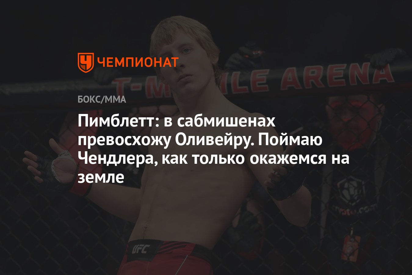 Боец UFC в легком весе, Пэдди Пимблетт, заявил, что считает себя более искусным мастером болевых и удушающих приемов, чем Чарльз Оливейра.